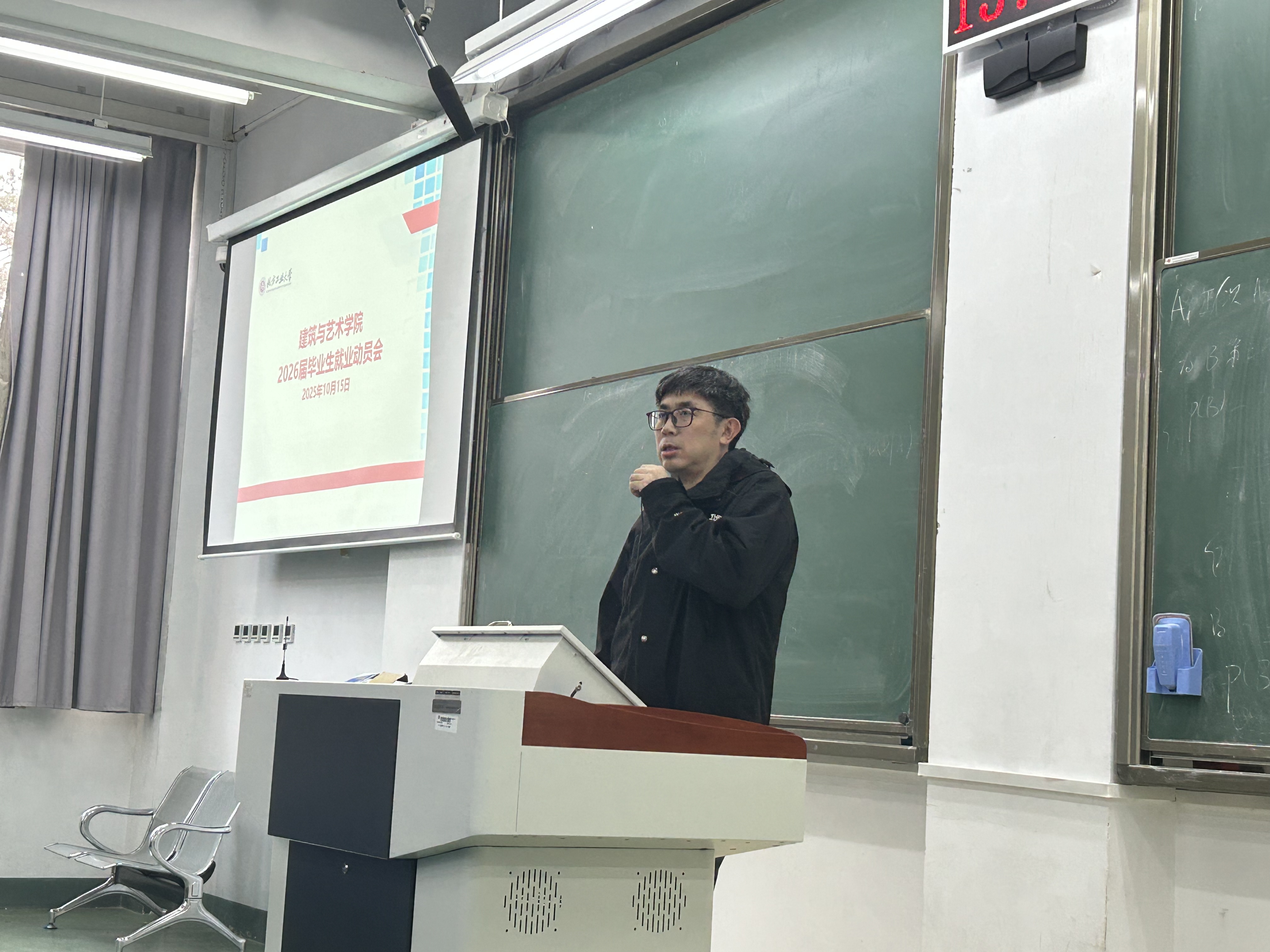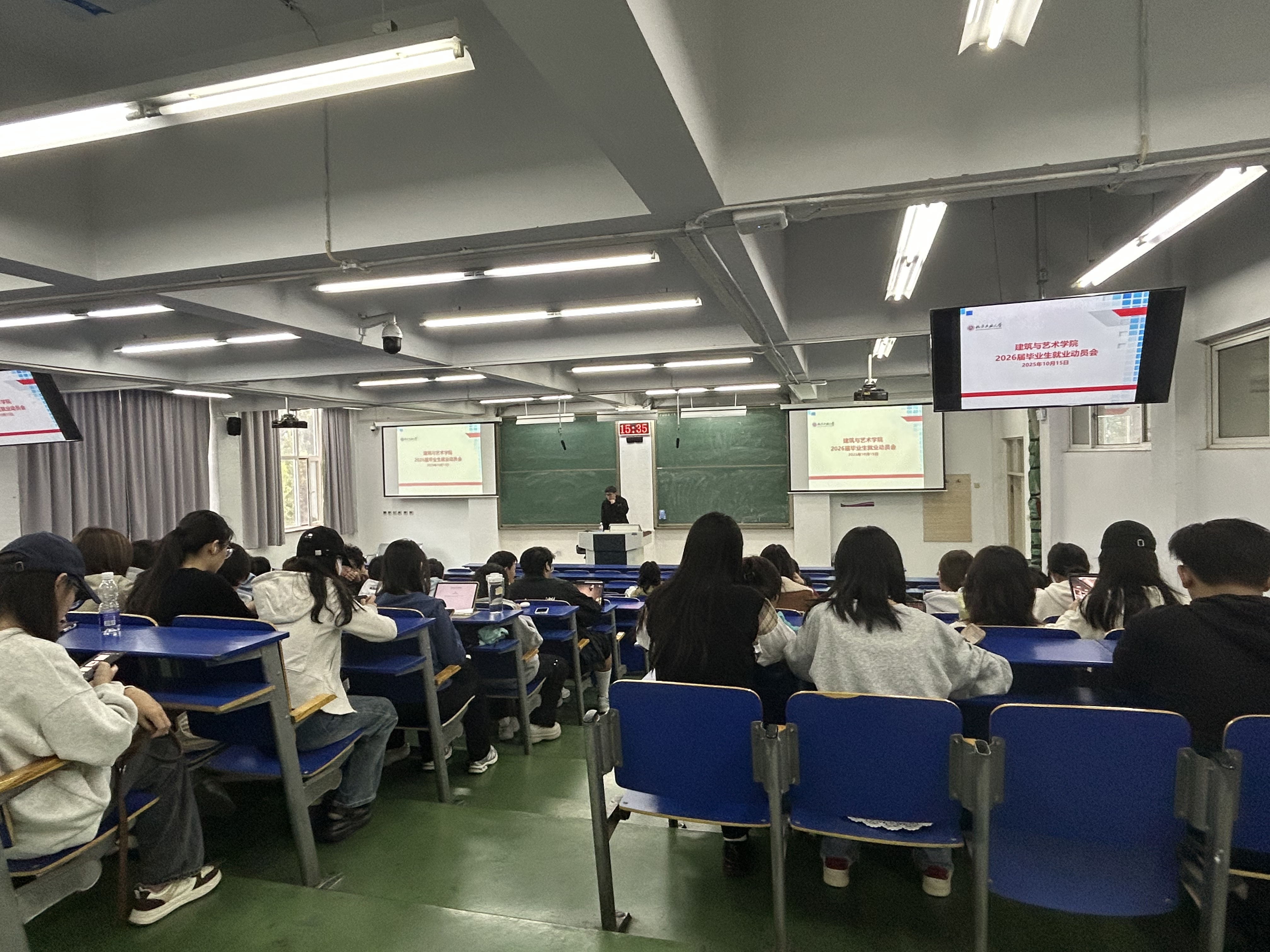 为帮助毕业生了解当前的就业形势,树立正确的就业观念,抢抓秋招关键时期,全力促进学院2026届毕业生早就业、就好业,提升就业工作成效。建筑与艺术学院于2025年10月15日召开2026届毕业生就业动员会。建筑与艺术学院院长王新征、党委副书记张丁、毕业班辅导员及全体毕业生参加了会议。