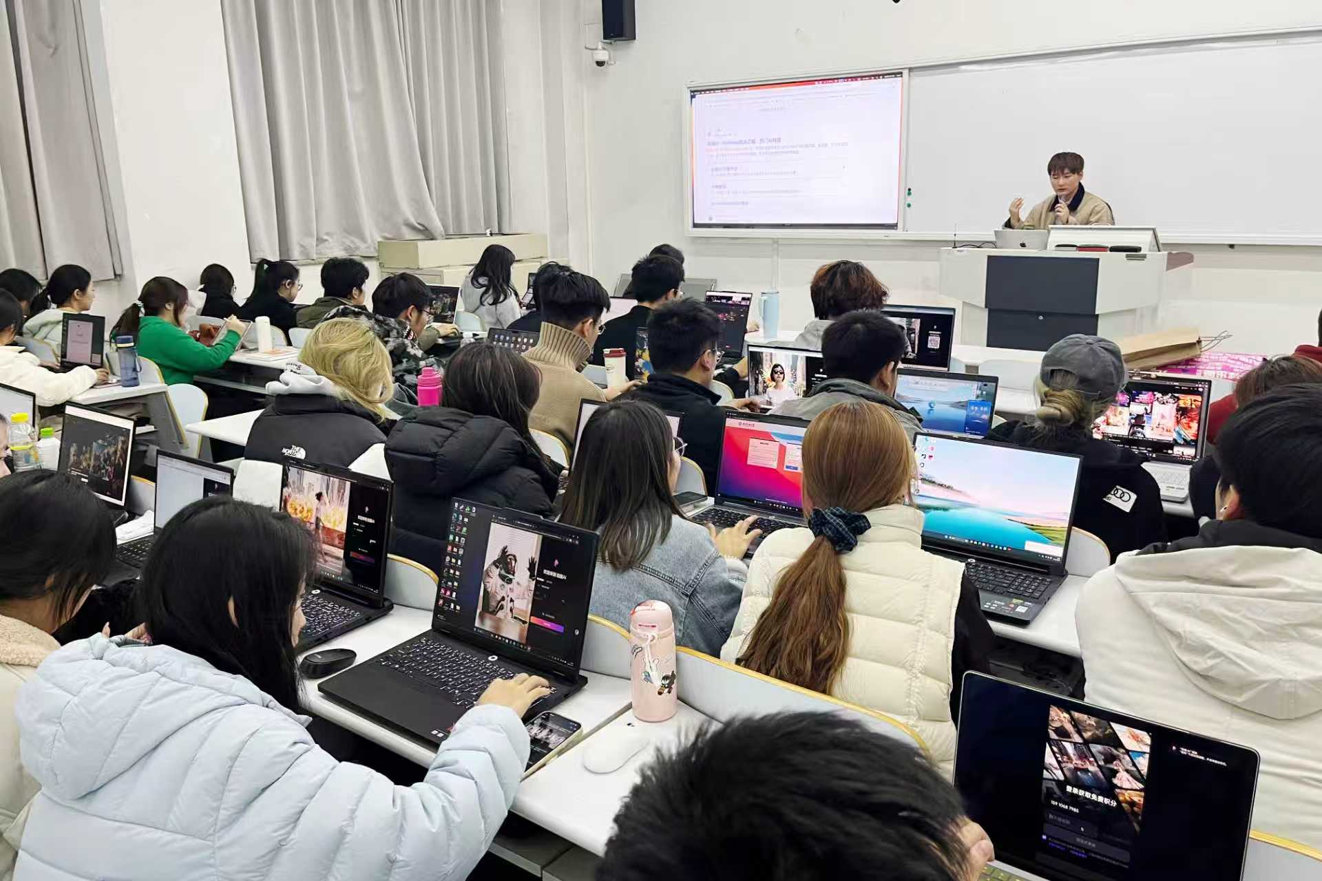 为让同学们切实掌握AI工具的操作技巧,讲座还设置了现场教学环节,从创意构思、脚本撰写到视频制作,逐步指导同学们上手实践。同学们成功创作出属于自己的 AI 视频作品,将理论知识快速转化为实际创作能力。互动过程中,同学们积极提问,围绕AI 创作与主讲人深入交流,现场学习氛围浓厚,进一步加深了对 AI 创作的理解。