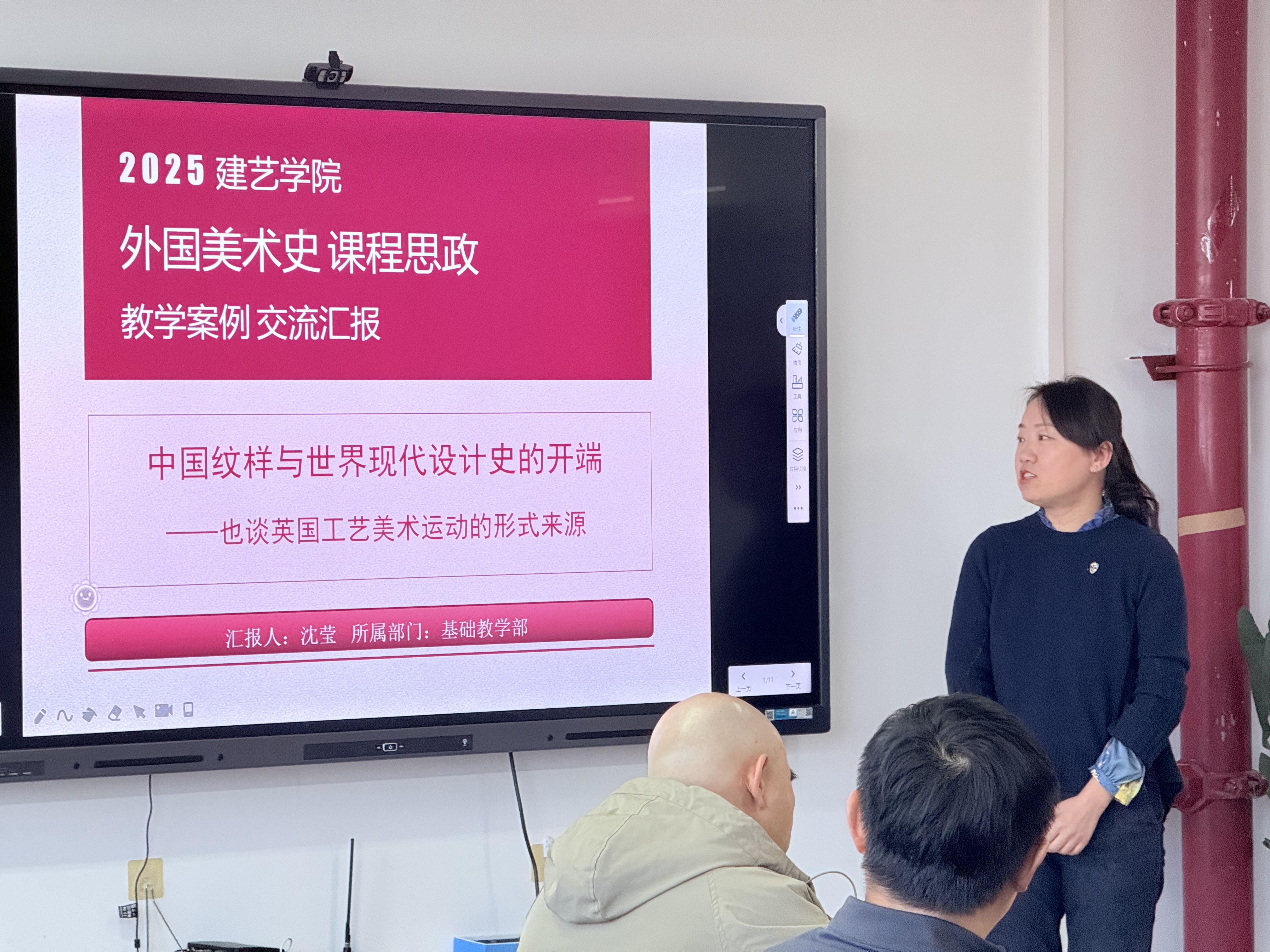 李道勇和沈莹两位老师分别以《以成长为导向,探求课堂教学的生命化》、《中国纹样与世界现代设计史的开端》为题,汇报了专业教师在课程思政建设过程中的感受和体会。马克思主义学院韩小南老师通过思政课教师角度对《中国建筑史》进行了分析和解读。她表示,建筑与艺术学院的各专业实践性强,注重应用能力的培养,课程思政可以从抓住文化历史、历史人物,聚焦非凡技艺,赞美匠心精神,特写文化烙印,弘扬传统文化的角度聚焦具体的元素和典型案例。参加集体备课的各位老师一致认为,推动课程思政建设是要落实立德树人根本任务为主题,将课堂还给学生,调动学生的积极性,利用人物、案例设计针对不同教学场景下的模块在教学中使用,抓住时间节点、抓住精品课程建设。