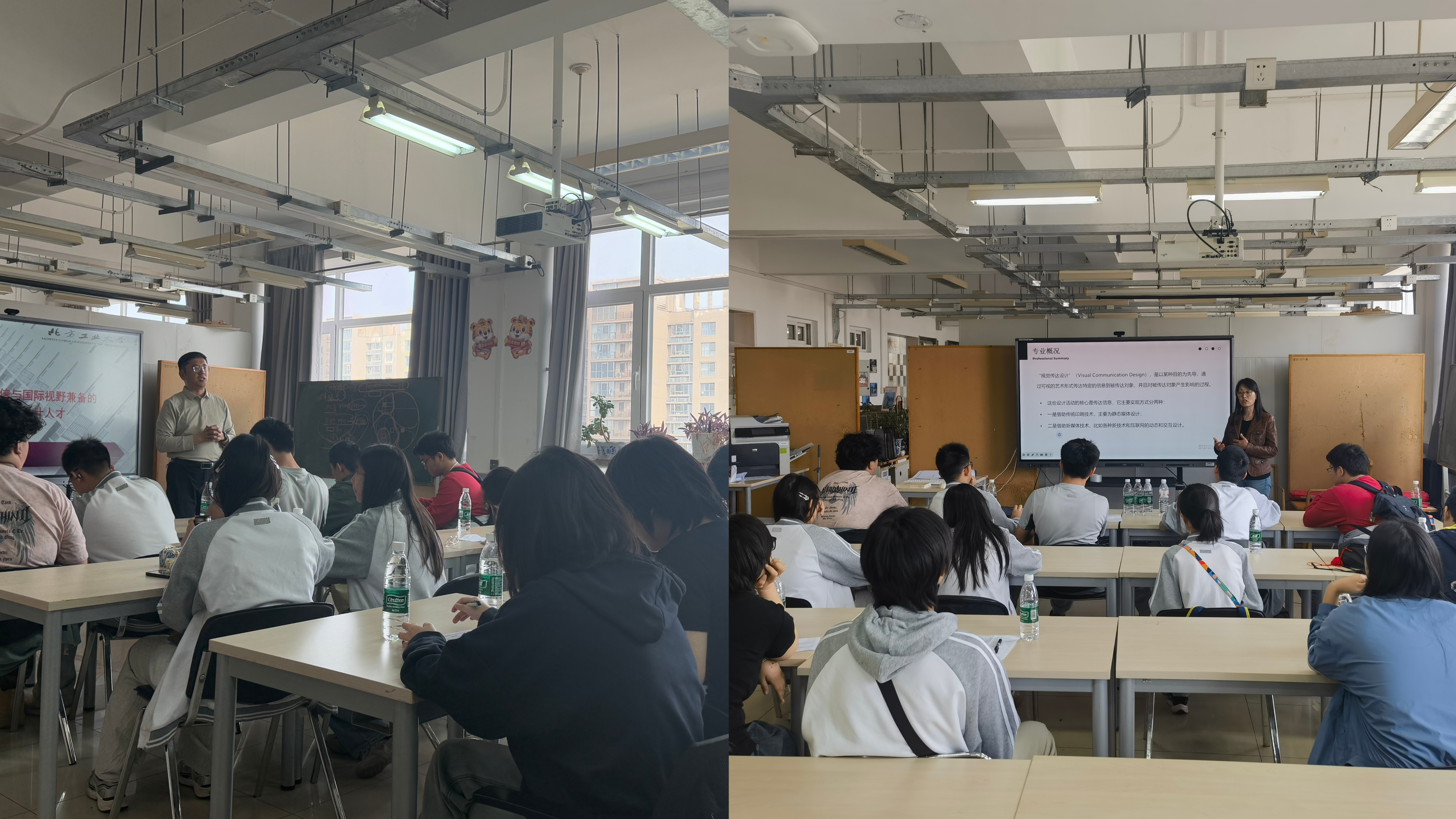 实验室参观活动结束后,建筑与艺术学院生就业助理张晋、艺术设计系主任刘兵兵与来访师生就学校基本情况、学院专业设置、行业发展前景等问题进行深入交流,同时邀请在我校就读的北大附中朝阳未来学校毕业生对相关学习生活情况进行介绍。