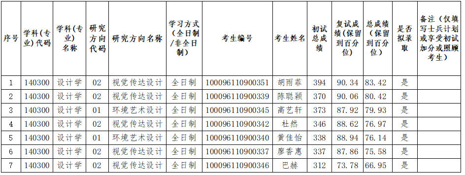 2026年设计学(140300)第一批次复试结果名单公示如下: