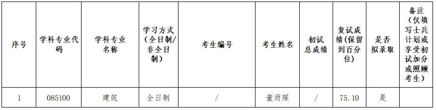 2026年建筑(085100)第一批次复试结果公示如下: