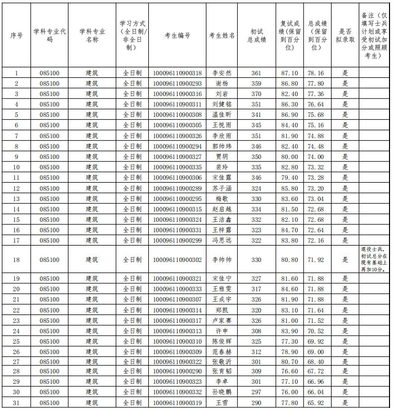 2026年建筑专硕(085100)第一批次复试结果公示
