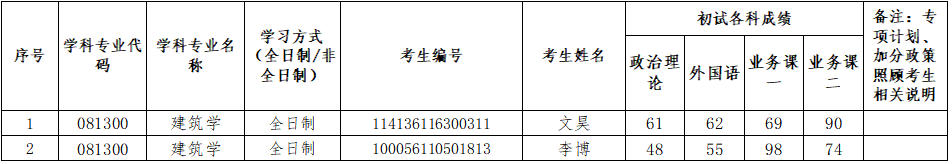 2026年建筑学(081300)第二批次复试考生名单公示(03建筑技术科学方向)