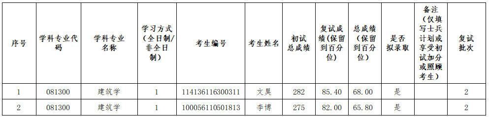 2026年建筑学(081300)第二批次拟录取名单公示(03建筑技术科学方向)