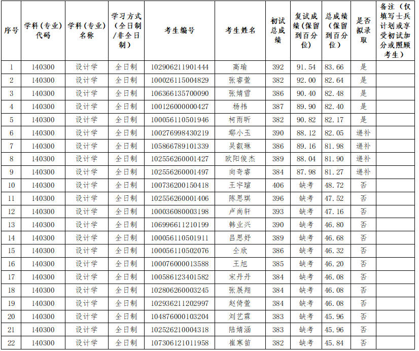 2026年设计学(140300)第二批次拟录取名单公示